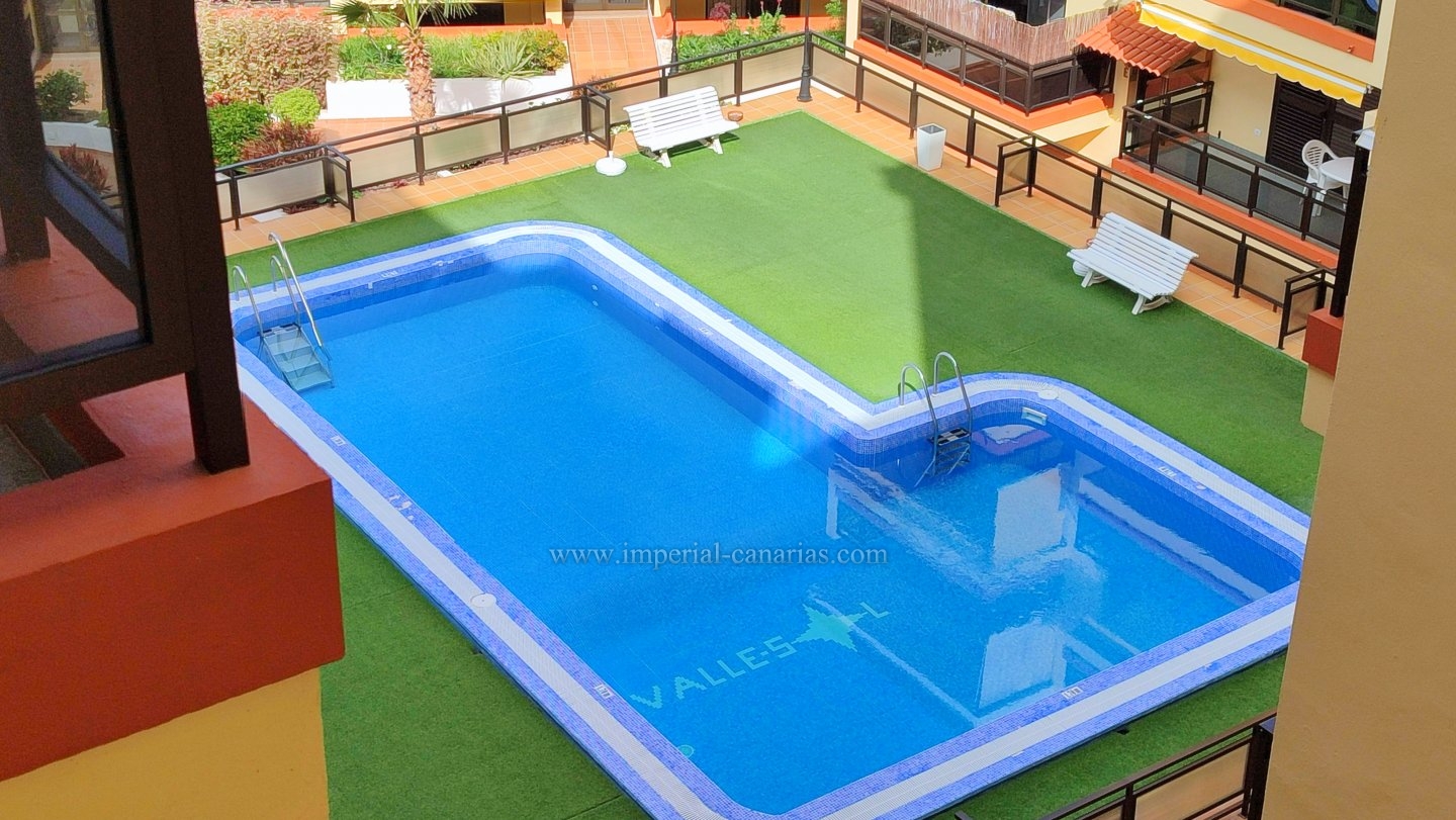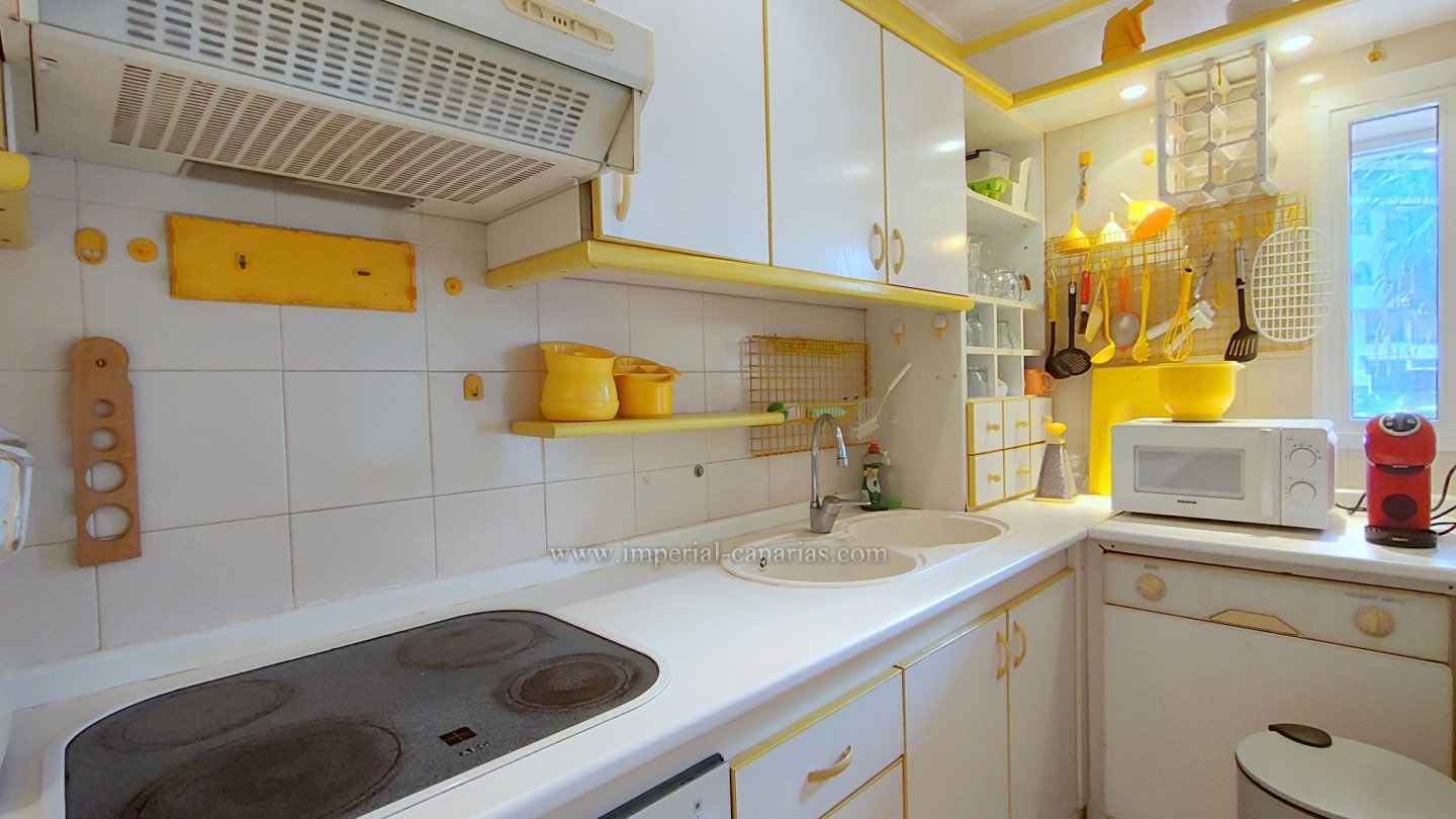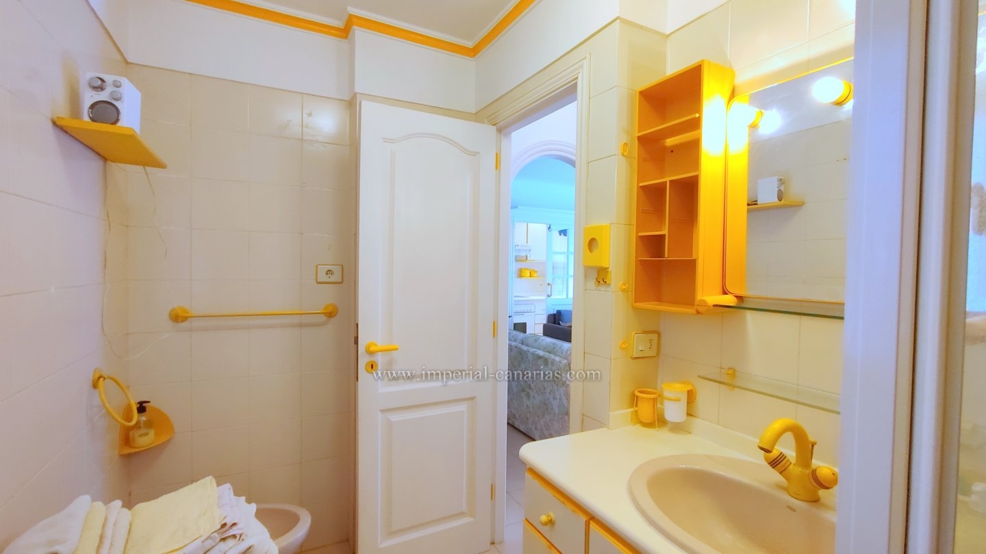 | Se alquila confortable y coqueto apartamento amueblado y de un dormitorio en la zona del Botánico, en Puerto de La Cruz. Se alquila tanto larga temporada como para corta. La vivienda se encuentra en la tercera planta de uno de los bloques del edificio y se puede disfrutar de la refrescante piscina y del jardín comunitario cuidado con esmero. El apartamento dispone de una espaciosa terraza de doce cuadrados, provista de mini-cocina exterior para comer al aire libre, orientada al sur y debido a ello, el apartamento es soleado y luminoso. Habitaciones exteriores todas ellas. Vistas a la ciudad, el Teide, las montañas y también hacia la piscina, los jardines comunes y el mar. Está completamente amueblado, y equipado. Se compone de salón comedor desde el que se accede tanto a a la cocina separada mediante puerta corrediza como hacia la acogedora terraza. Dispone de un espacioso dormitorio matrimonial con armario empotrado. Baño provisto de ducha. Edificio apto para personas con movilidad reducida. Plaza de parking en garaje comunitario en la parte baja del propio edificio e incluido en el precio del alquiler mensual. Gastos de suministro aparte. Coche prescindible debido a la proximidad de los comercios y buena conexión con el transporte público. |