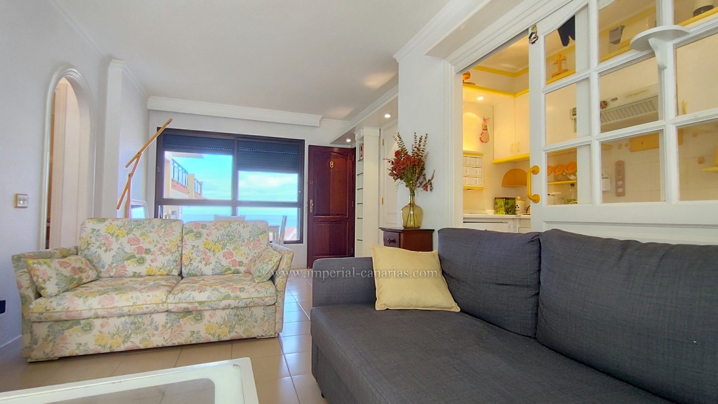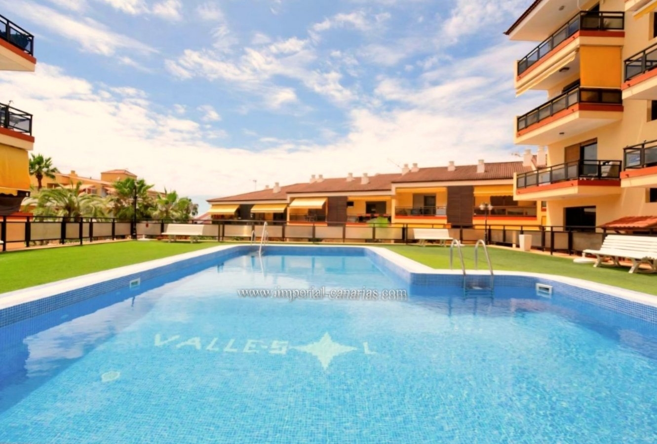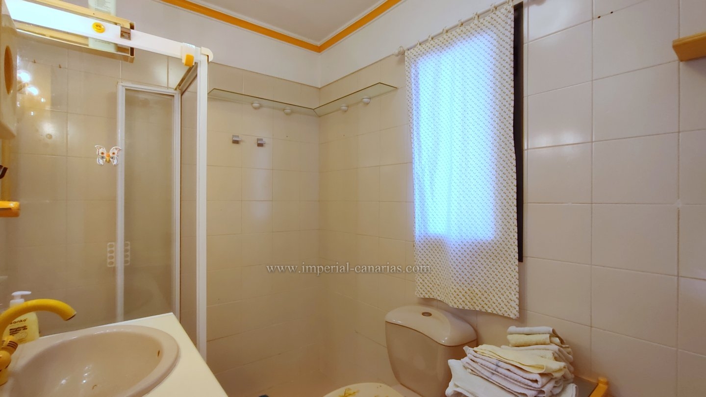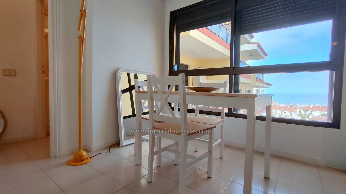 | Se alquila confortable y coqueto apartamento amueblado y de un dormitorio en la zona del Botánico, en Puerto de La Cruz. Se alquila tanto larga temporada como para corta. La vivienda se encuentra en la tercera planta de uno de los bloques del edificio y se puede disfrutar de la refrescante piscina y del jardín comunitario cuidado con esmero. El apartamento dispone de una espaciosa terraza de doce cuadrados, provista de mini-cocina exterior para comer al aire libre, orientada al sur y debido a ello, el apartamento es soleado y luminoso. Habitaciones exteriores todas ellas. Vistas a la ciudad, el Teide, las montañas y también hacia la piscina, los jardines comunes y el mar. Está completamente amueblado, y equipado. Se compone de salón comedor desde el que se accede tanto a a la cocina separada mediante puerta corrediza como hacia la acogedora terraza. Dispone de un espacioso dormitorio matrimonial con armario empotrado. Baño provisto de ducha. Edificio apto para personas con movilidad reducida. Plaza de parking en garaje comunitario en la parte baja del propio edificio e incluido en el precio del alquiler mensual. Gastos de suministro aparte. Coche prescindible debido a la proximidad de los comercios y buena conexión con el transporte público. |