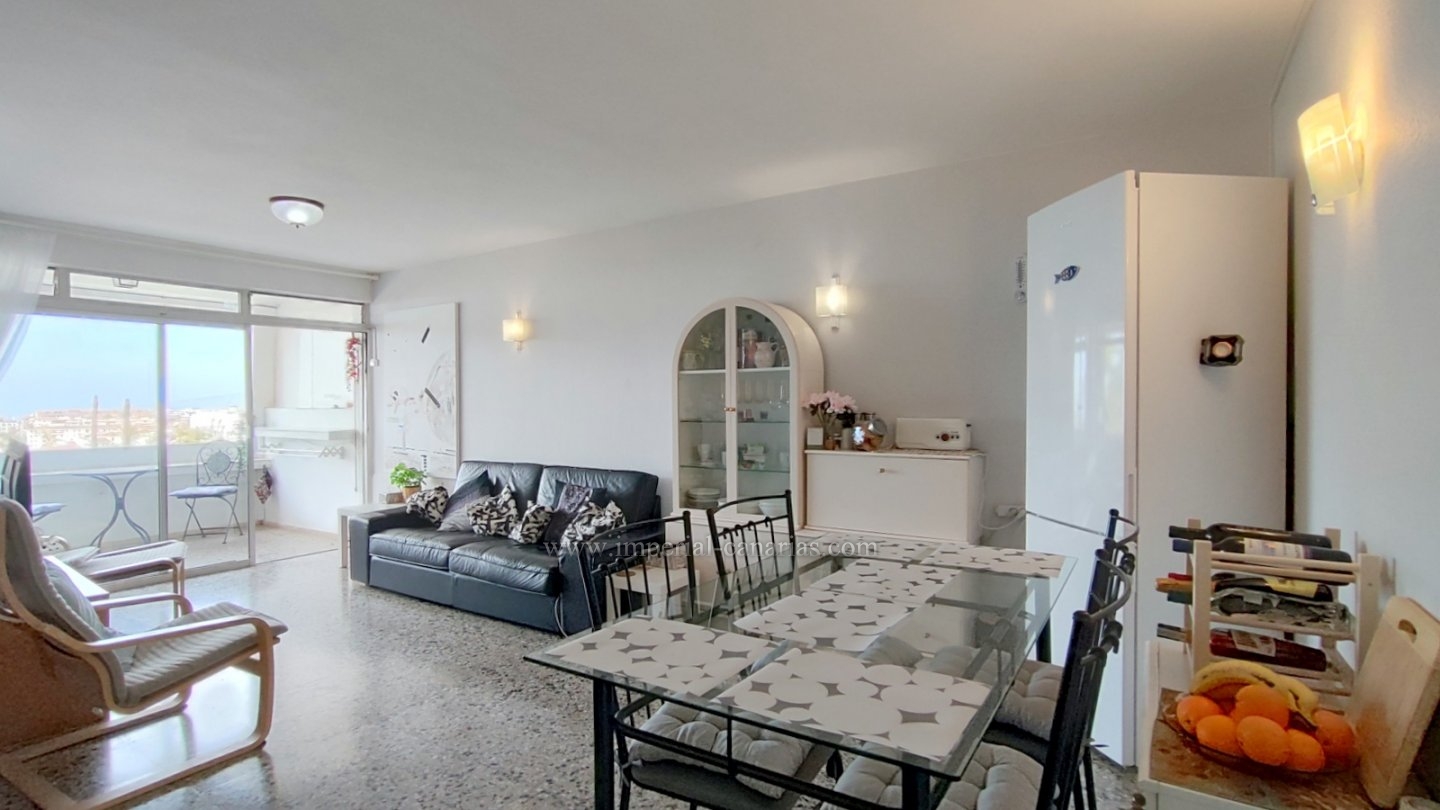 | Se alquila por temporadas, espacioso apartamento amueblado, de un dormitorio, en Puerto de La Cruz, en la tranquila zona de San Fernando, cerca del agradable Parque del Taoro, donde realizar deporte o pasear. El edificio cuenta con varios accesos. La distribución que presenta el apartamento es la de un gran salón comedor diáfano, con acceso directo a la agradable terraza abierta y con vistas a la ciudad, hacia el mar y a la abundante zona verde de los alrededores. La cocina es americana, está completamente equipada, teniendo incluso lavavajillas. Se encuentra integrada en el gran salón y junto al espacio destinado a comedor. El dormitorio es amplio y está provisto de dos armarios empotrados, por lo que hay mucho espacio de almacenamiento. Desde ésta estancia se tiene acceso a un balcón común con vistas hacia la piscina comunitaria. El baño ha sido reformado y tiene ducha de gran tamaño. En él se encuentra también la lavadora. En la parte alta del edificio podremos disfrutar de la gran azotea común con un inmenso solarium. Desde allí las vistas son panorámicas. Si quiere residir en el norte de la isla y en un distrito tranquilo, este piso es el adecuado para ello. Hospital cercano. El transporte público pasa por la zona. Bar cercano, pequeño negocio de comestibles, farmacia, entre otros servicios. |