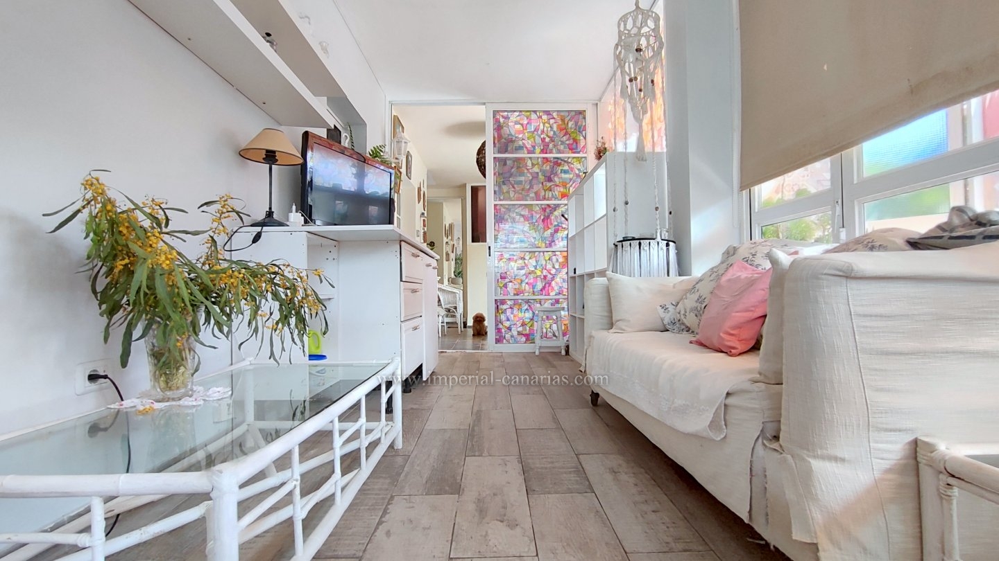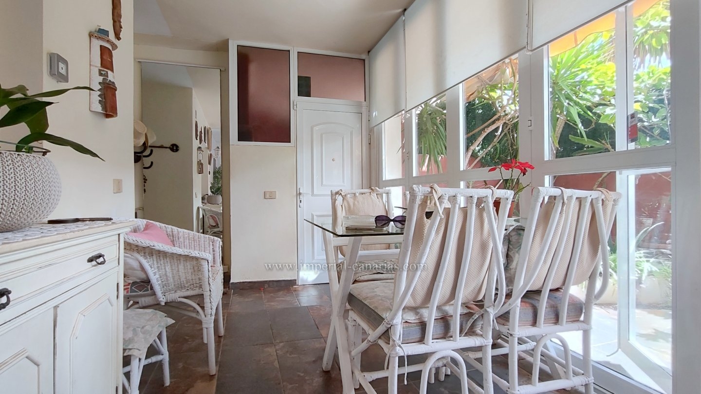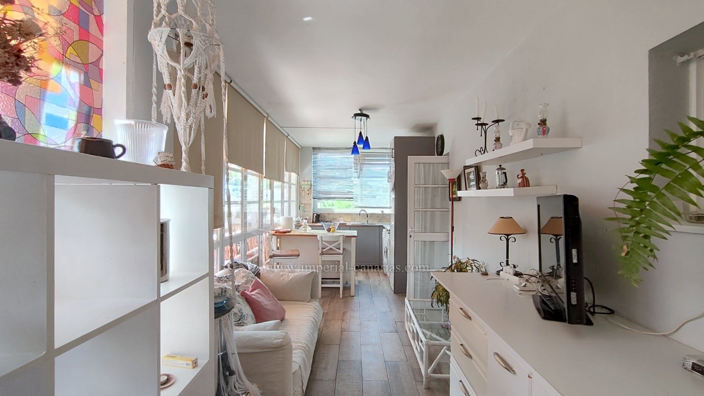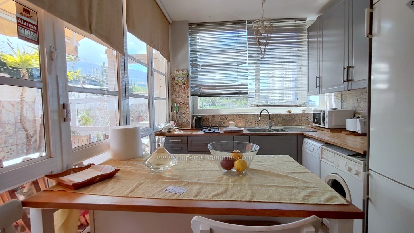| Se alquila para larga temporada bonito y confortable apartamento en el distrito de Playa Jardín, en Puerto de La Cruz. Ha sido reformado. Dispone de varias terrazas delimitadas con varios ambientes, jardín, zona chill out, con mobiliario de exterior y toldo para los calurosos días y zona de barbacoa con vistas al mar y al Teide. La vivienda se compone de una acogedora terraza interior a modo de jardín de invierno situado justo en el hall a modo de bienvenida. El salón, el comedor y la cocina están integrados en la misma estancia, lo que lo hace todo muy hogareño y práctico. Dispone de un dormitorio matrimonial muy amplio con un gigantesco armario empotrado y un glamuroso tocador. Baño en suite provisto de ducha. Todas las habitaciones son exteriores. El apartamento se alquila amueblado y equipado. Los gastos de suministro no están incluidos en el precio del alquiler mensual. El wifi es gratuito. Zona tranquila, cerca de la playa, un paraíso. Apto para personas con movilidad reducida. Ideal para una o dos personas. No dispone de garaje pero hay abundante parking exterior por la zona. Negocios a proximidad. |