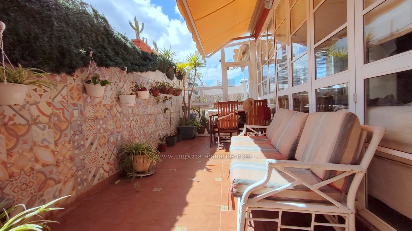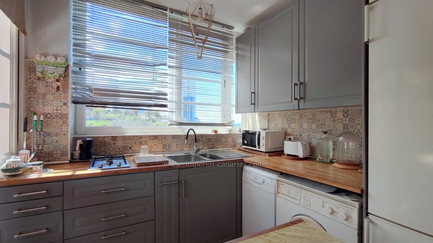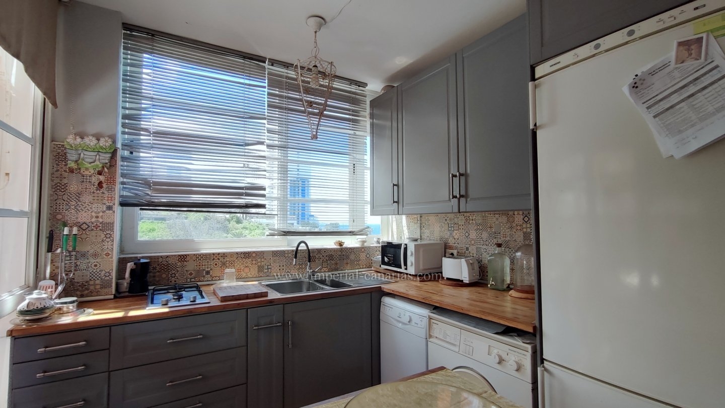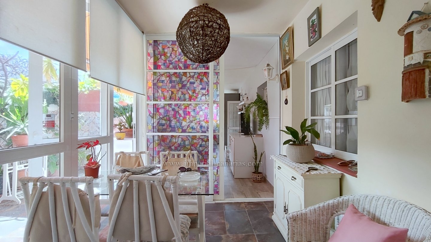 | Se alquila para larga temporada bonito y confortable apartamento en el distrito de Playa Jardín, en Puerto de La Cruz. Ha sido reformado. Dispone de varias terrazas delimitadas con varios ambientes, jardín, zona chill out, con mobiliario de exterior y toldo para los calurosos días y zona de barbacoa con vistas al mar y al Teide. La vivienda se compone de una acogedora terraza interior a modo de jardín de invierno situado justo en el hall a modo de bienvenida. El salón, el comedor y la cocina están integrados en la misma estancia, lo que lo hace todo muy hogareño y práctico. Dispone de un dormitorio matrimonial muy amplio con un gigantesco armario empotrado y un glamuroso tocador. Baño en suite provisto de ducha. Todas las habitaciones son exteriores. El apartamento se alquila amueblado y equipado. Los gastos de suministro no están incluidos en el precio del alquiler mensual. El wifi es gratuito. Zona tranquila, cerca de la playa, un paraíso. Apto para personas con movilidad reducida. Ideal para una o dos personas. No dispone de garaje pero hay abundante parking exterior por la zona. Negocios a proximidad. |